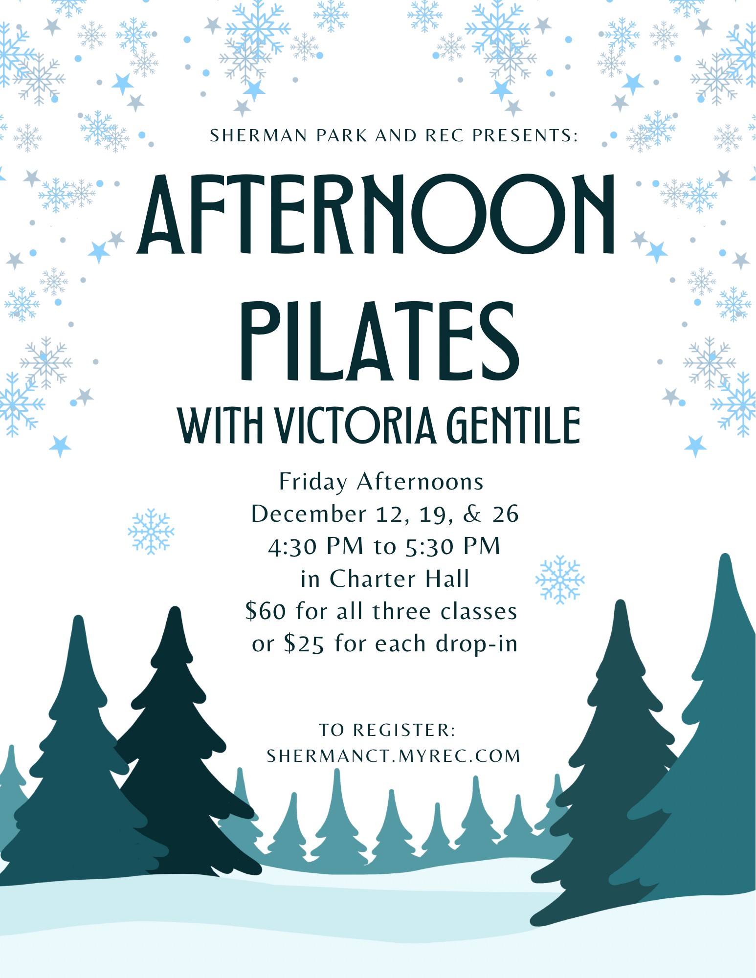 Pilates is back for December with a new day and time. Friday afternoons at 4:30. All levels are welcome.