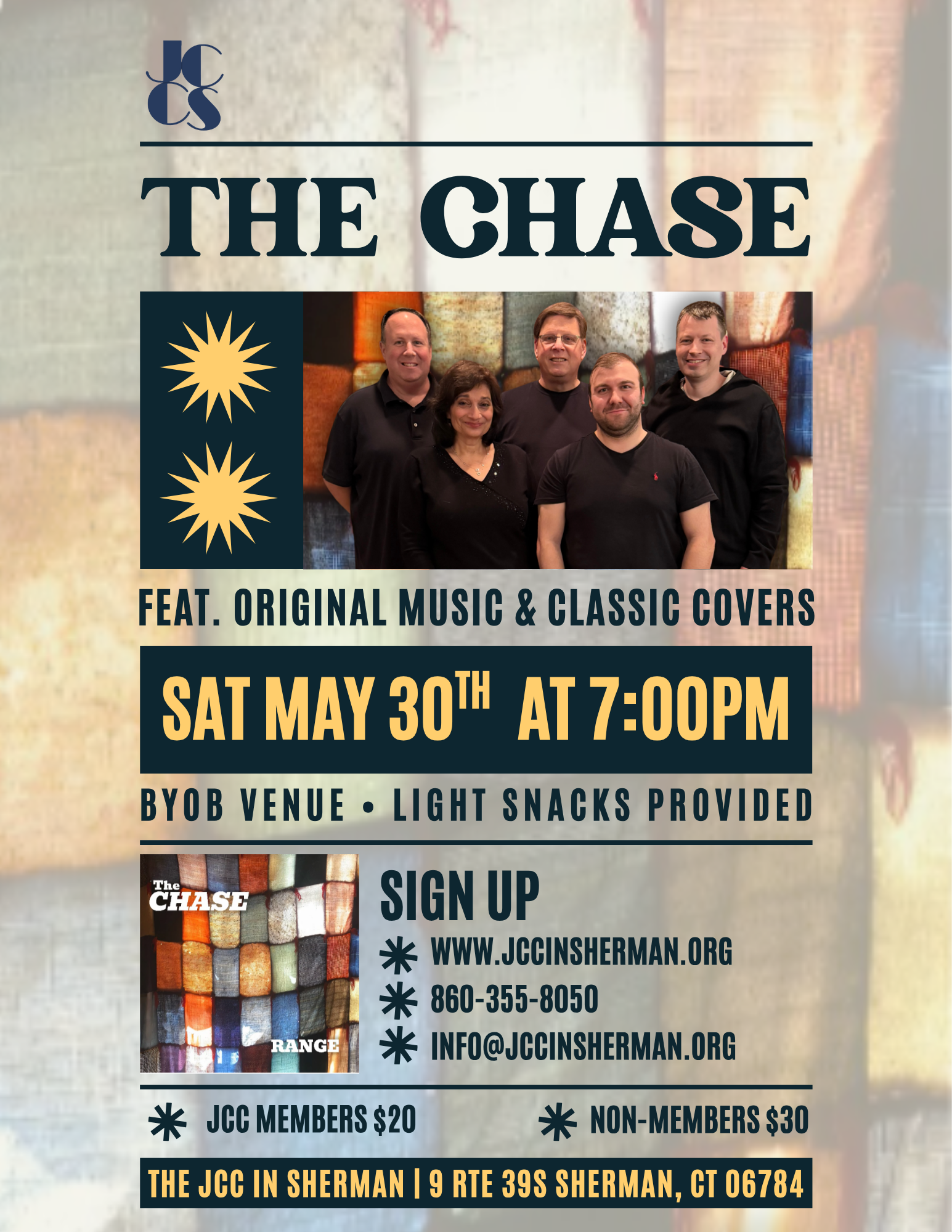 SHERMAN, CT – Get ready for another unforgettable night of live music as The Chase, Fairfield County’s premier five-piece band, returns to the JCC in Sherman on Saturday, May 30, at 7 PM.